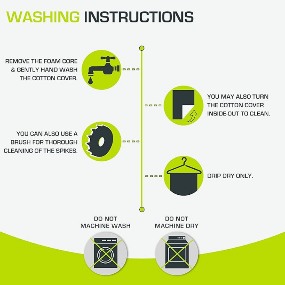 The outer surface is made with cotton fabric and ABS pressure points, while the inner padding provides a supportive base during use. Simply place the mat on a flat surface, lie back, and allow the stimulation points to activate across the body.